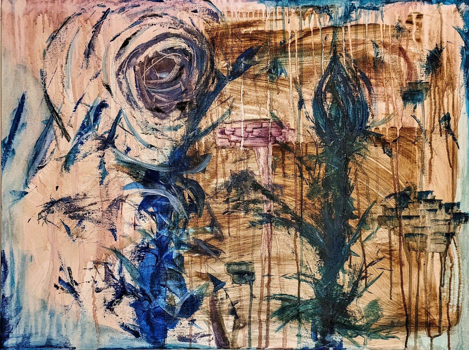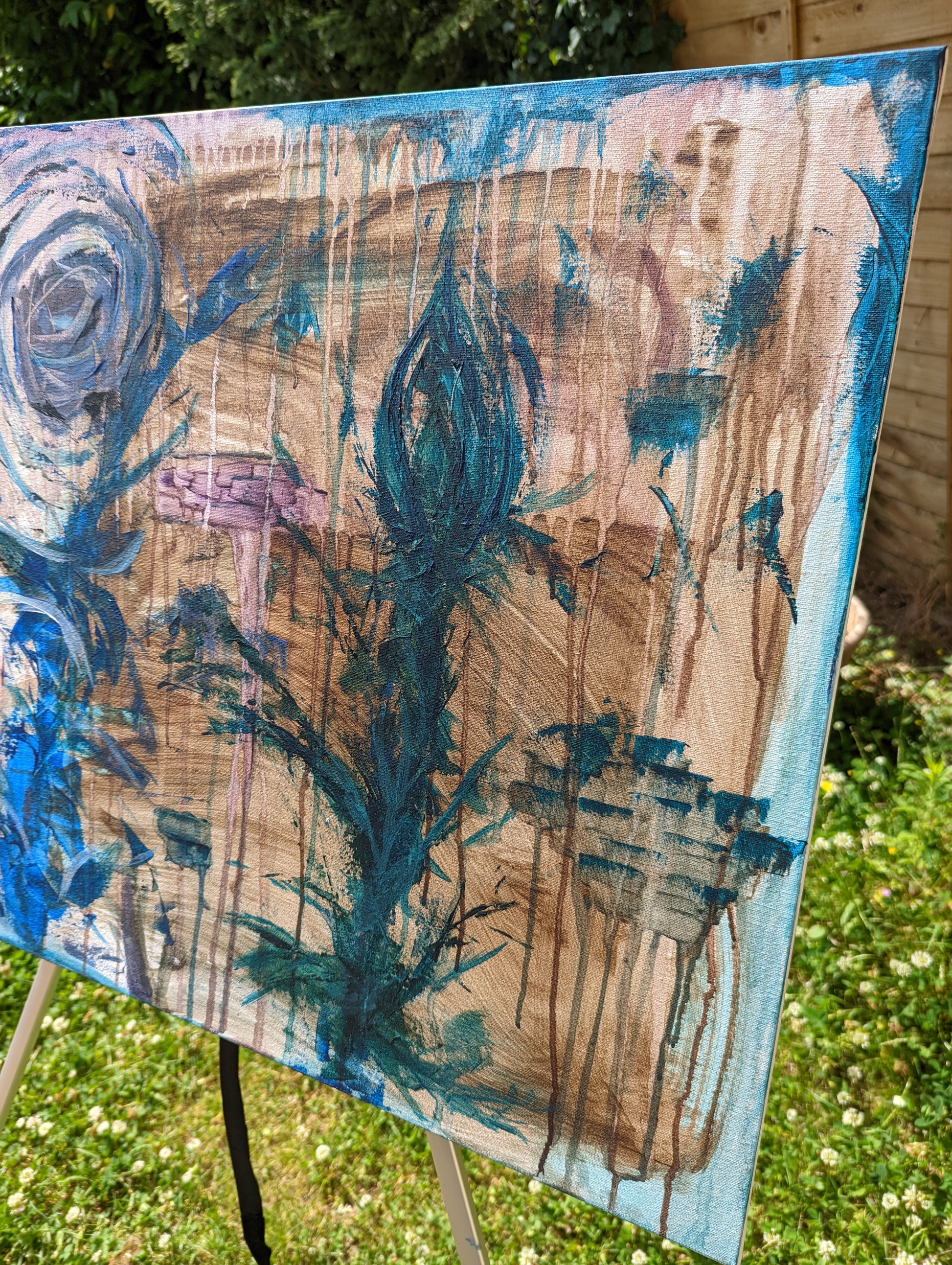 'Attachment In Bloom' is a one-of-a-kind acrylic painting on canvas. This piece would make a unique gift or addition to your home.