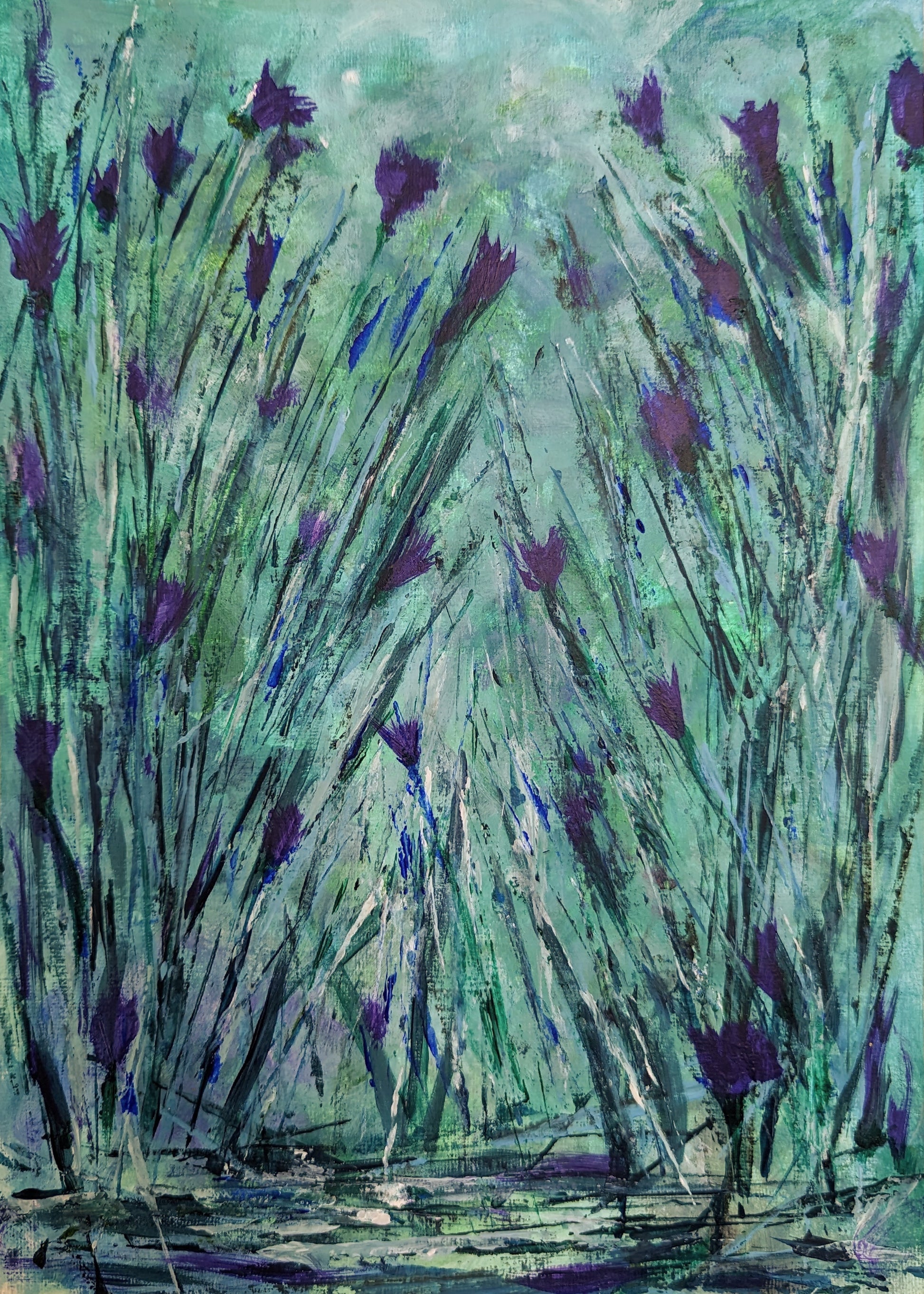 'Bewitched' is a one-of-a-kind, original acrylic painting on high-quality canvas paper. This piece would make a unique gift or addition to your home.