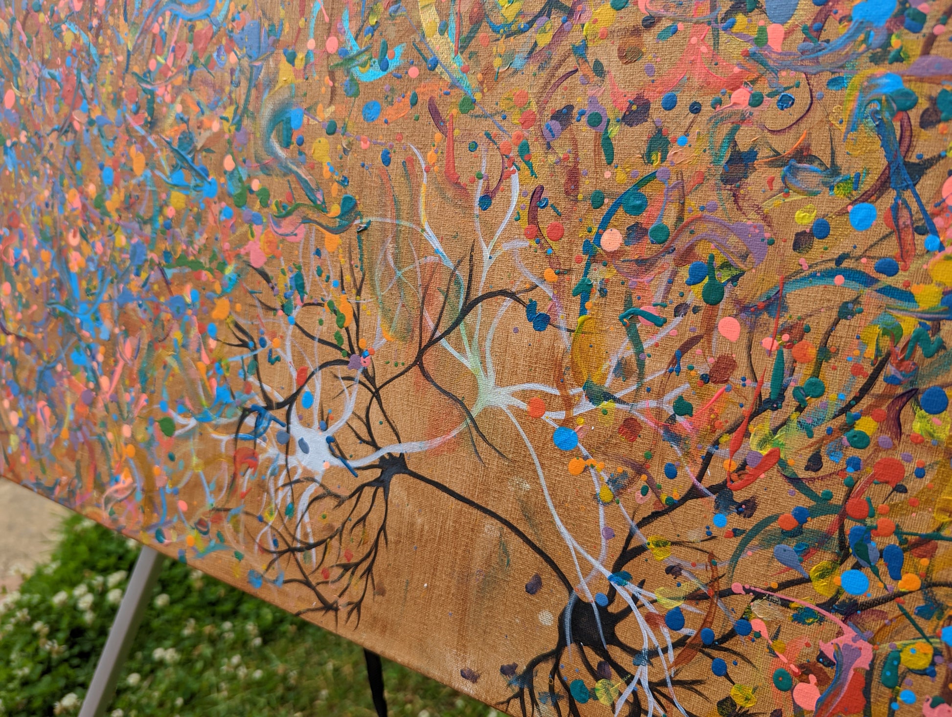 'Black And White Thinking' is a one-of-a-kind acrylic painting on canvas. This piece would make a unique gift or addition to your home.