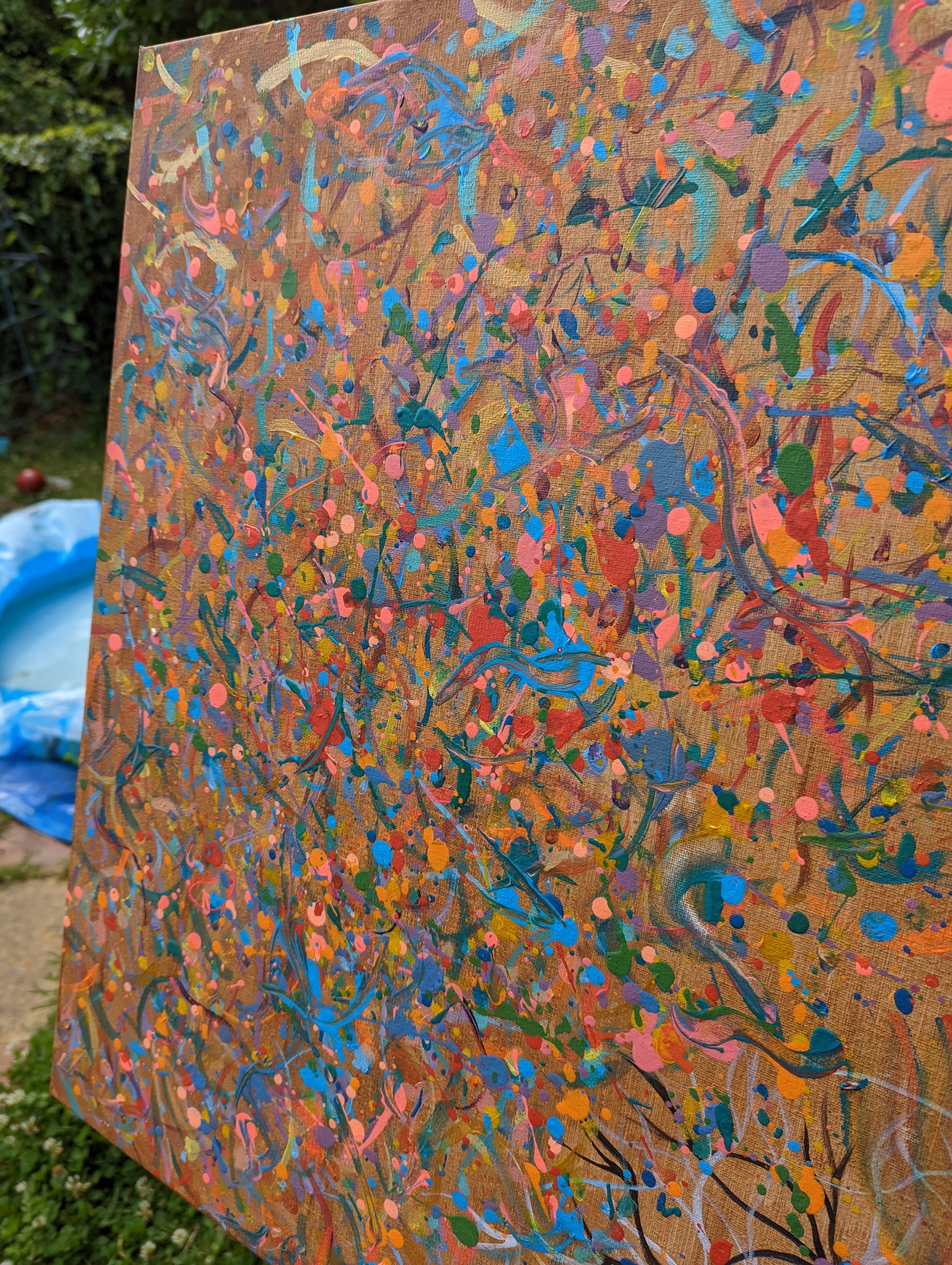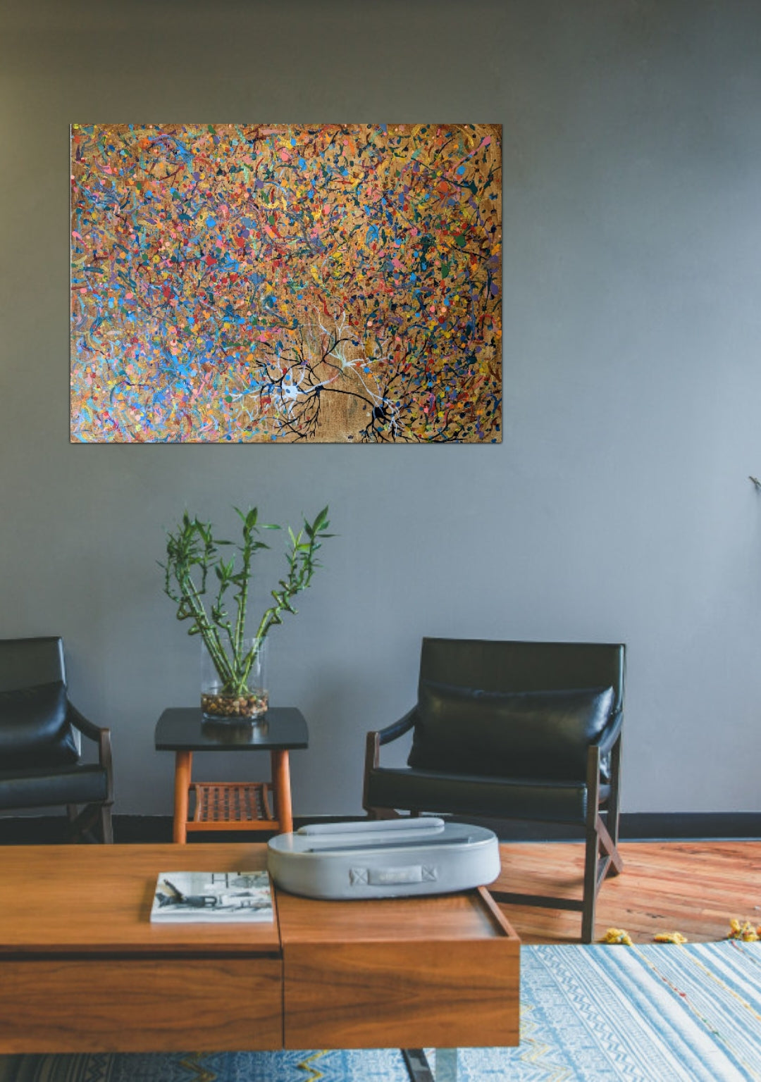 The frame on the pictures is for illustrative purpose only and it is not included in the delivery. The painting is sold without a frame