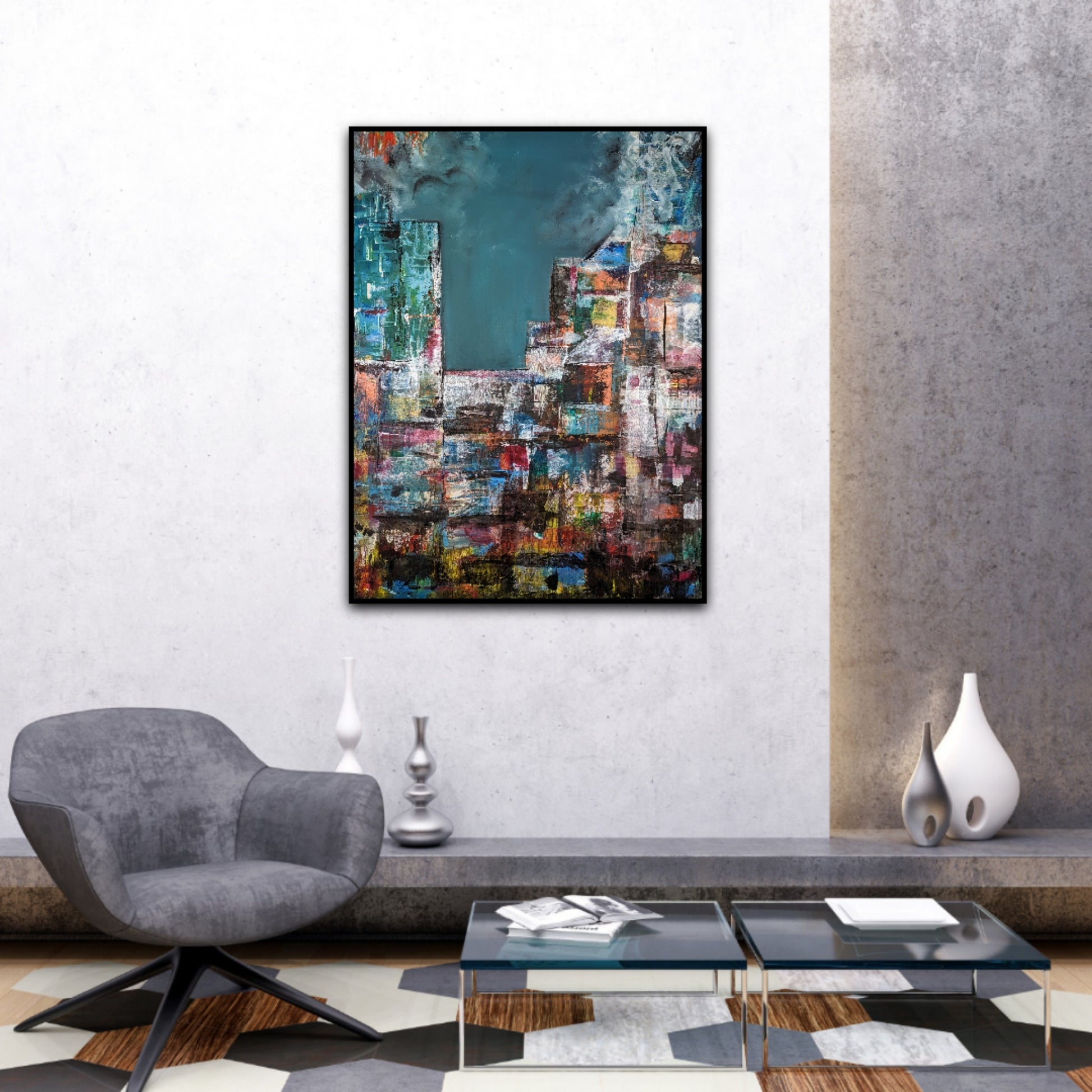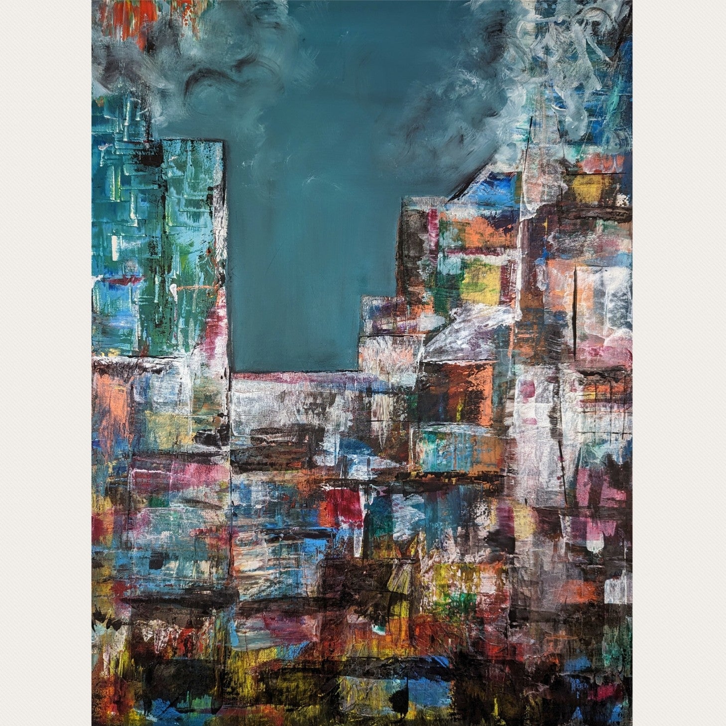 'City Alight' is a one-of-a-kind acrylic painting on canvas. This piece would make a unique gift or addition to your home.