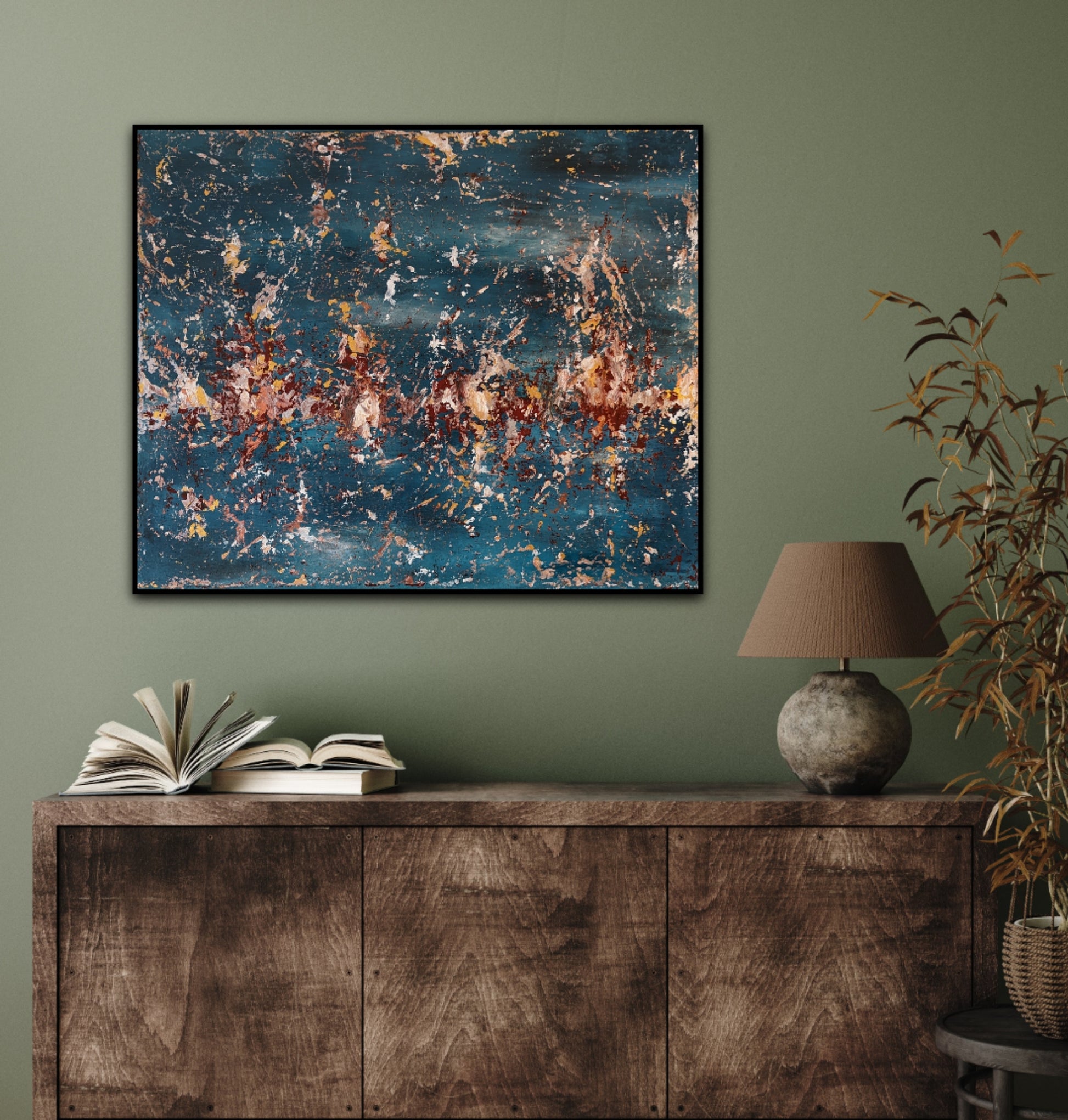 The frame on the pictures is for illustrative purpose only and it is not included in the delivery. The painting is sold without a frame