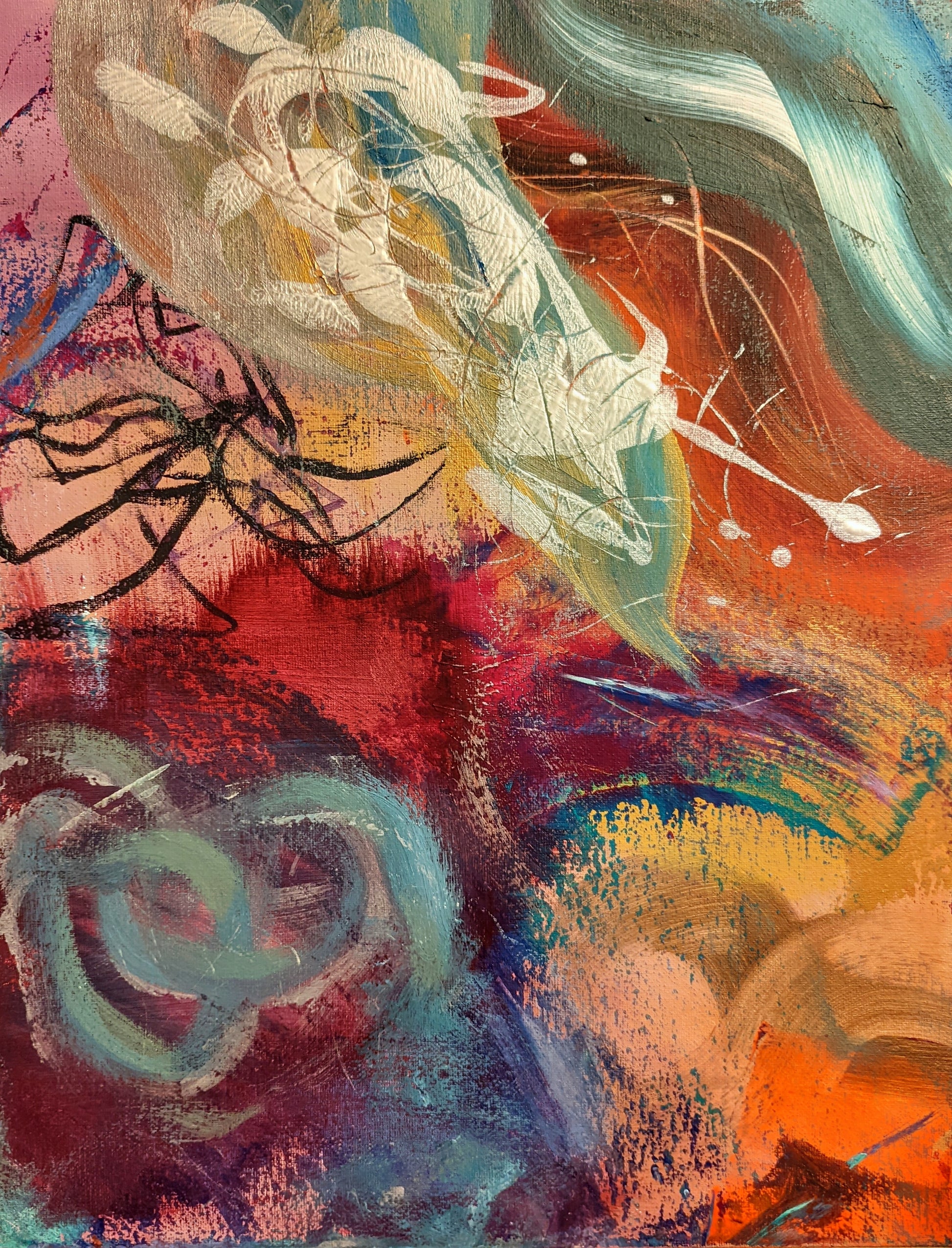 'Lost At Play' is a one-of-a-kind acrylic painting on canvas. This piece would make a unique gift or addition to your home.