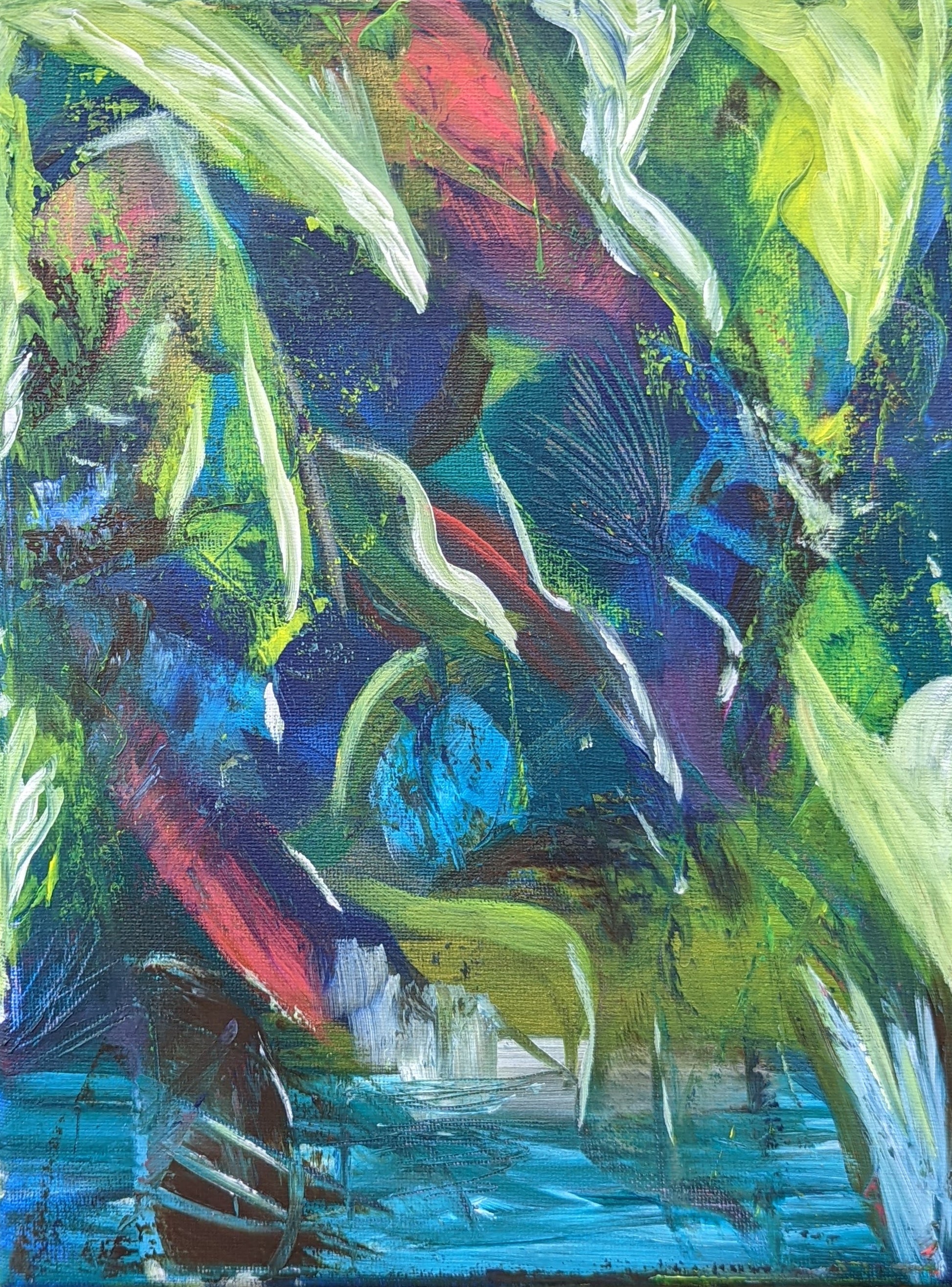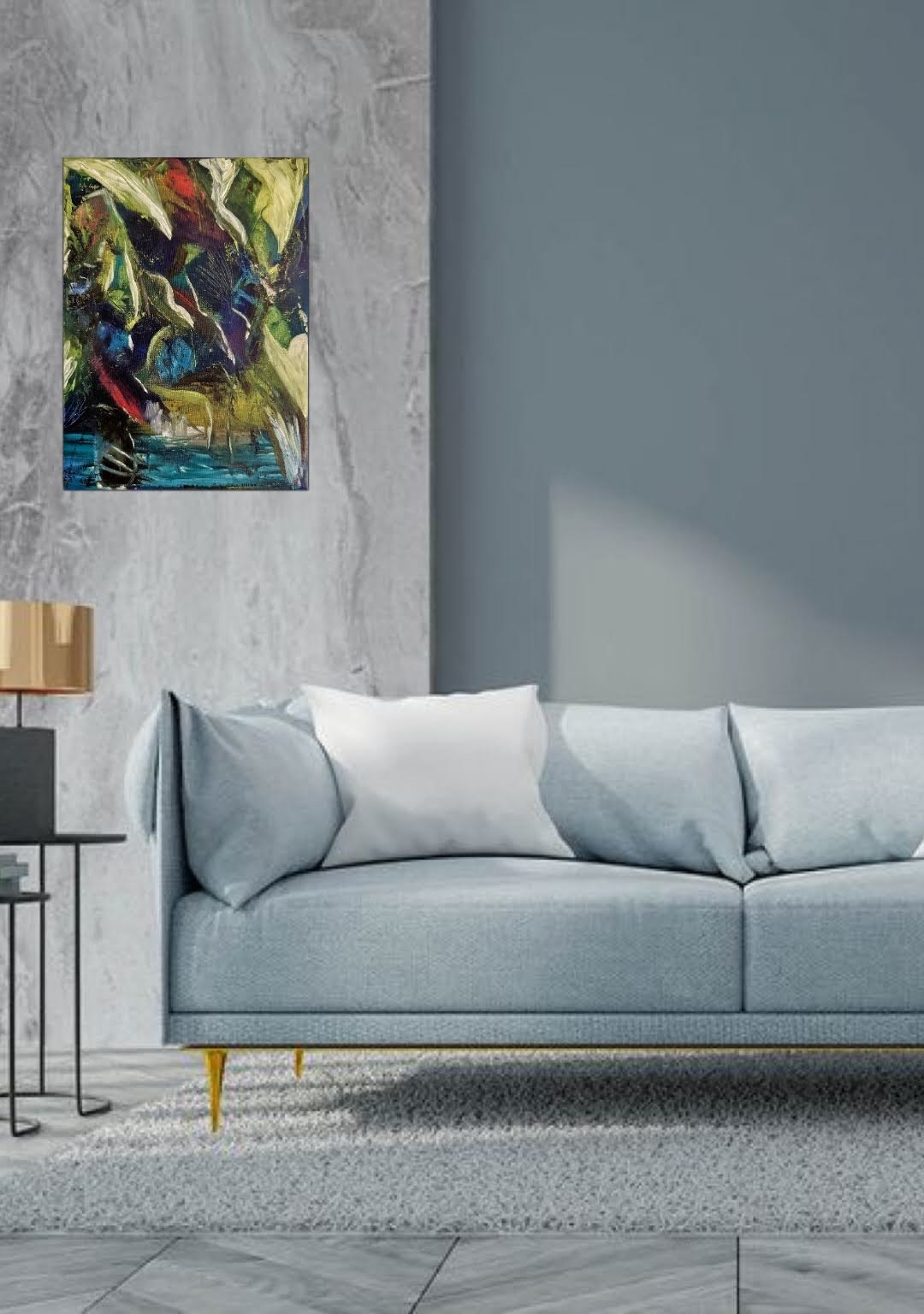 The frame on the pictures is for illustrative purpose only and it is not included in the delivery. The painting is sold without a frame
