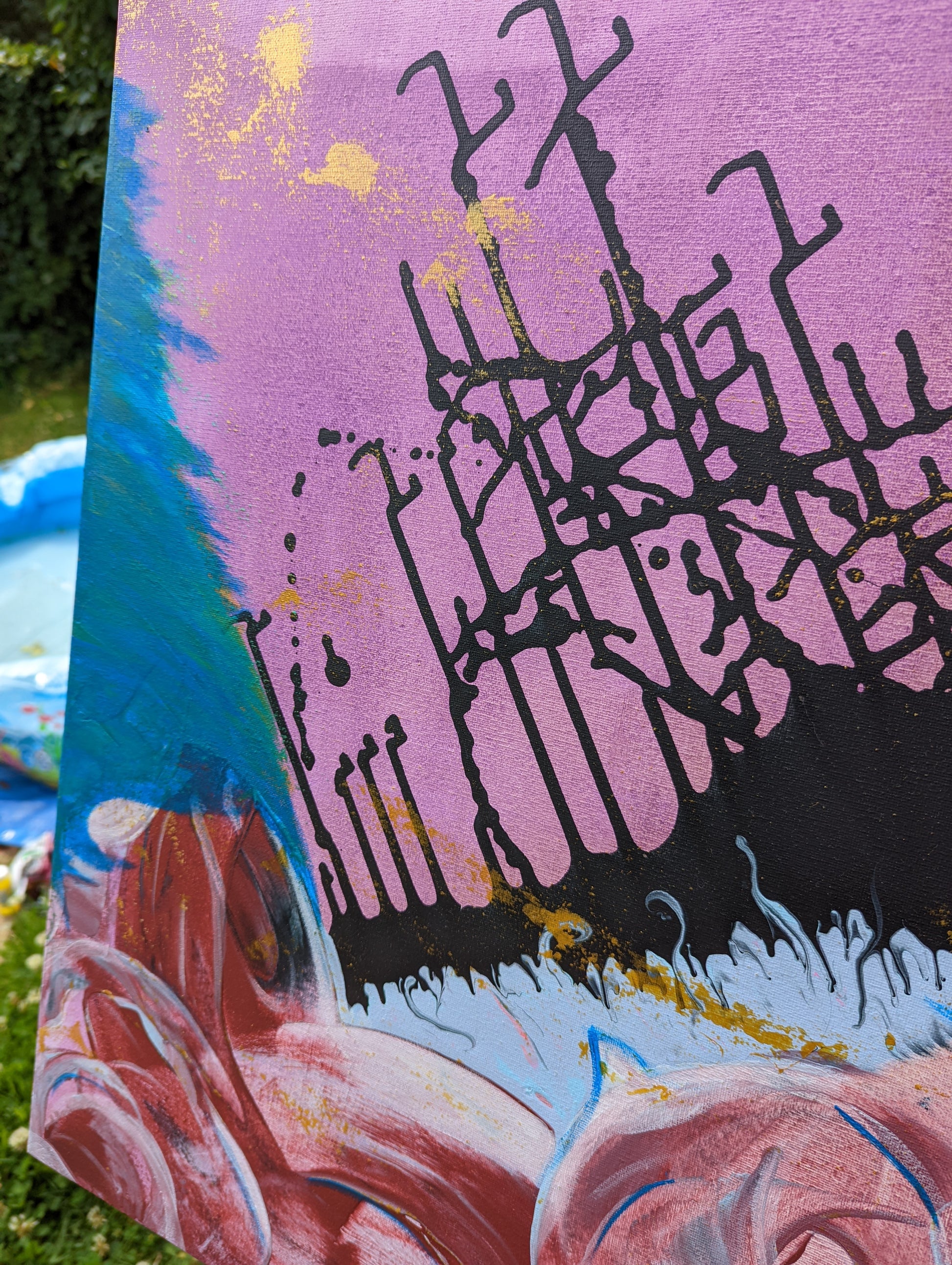 The frame on the pictures is for illustrative purpose only and it is not included in the delivery. The painting is sold without a frame