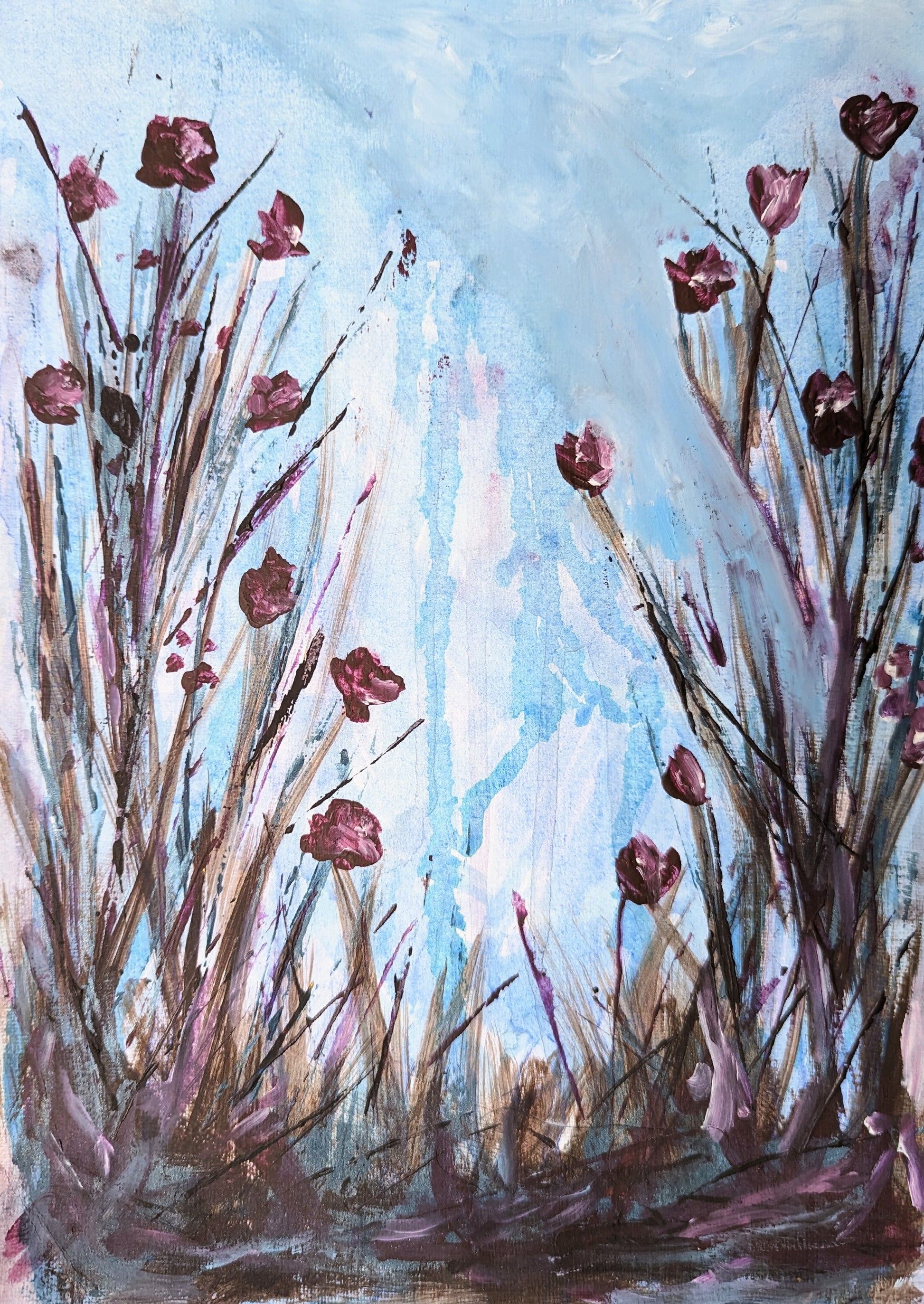 'Flamboyance' is a one-of-a-kind, original acrylic painting on high-quality canvas paper. This piece would make a unique gift or addition to your home.