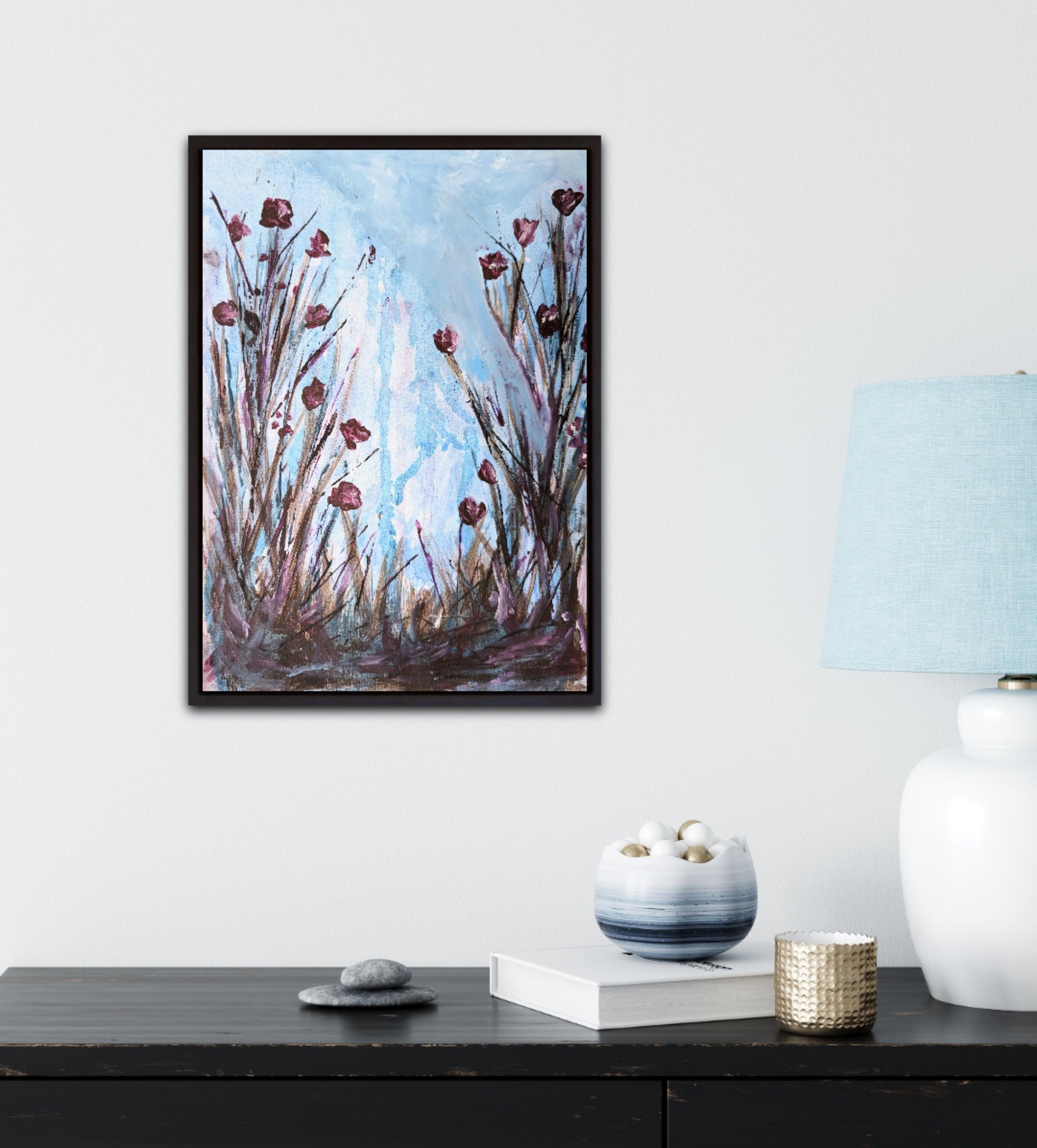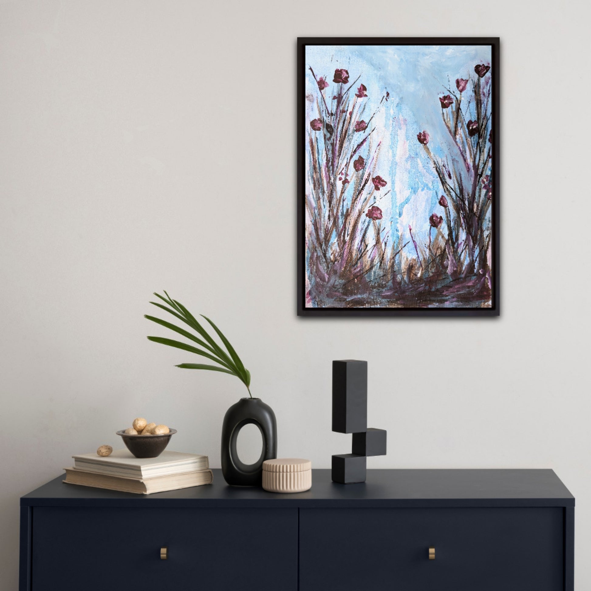 The frame on the pictures is for illustrative purpose only and it is not included in the delivery. The painting is sold without a frame