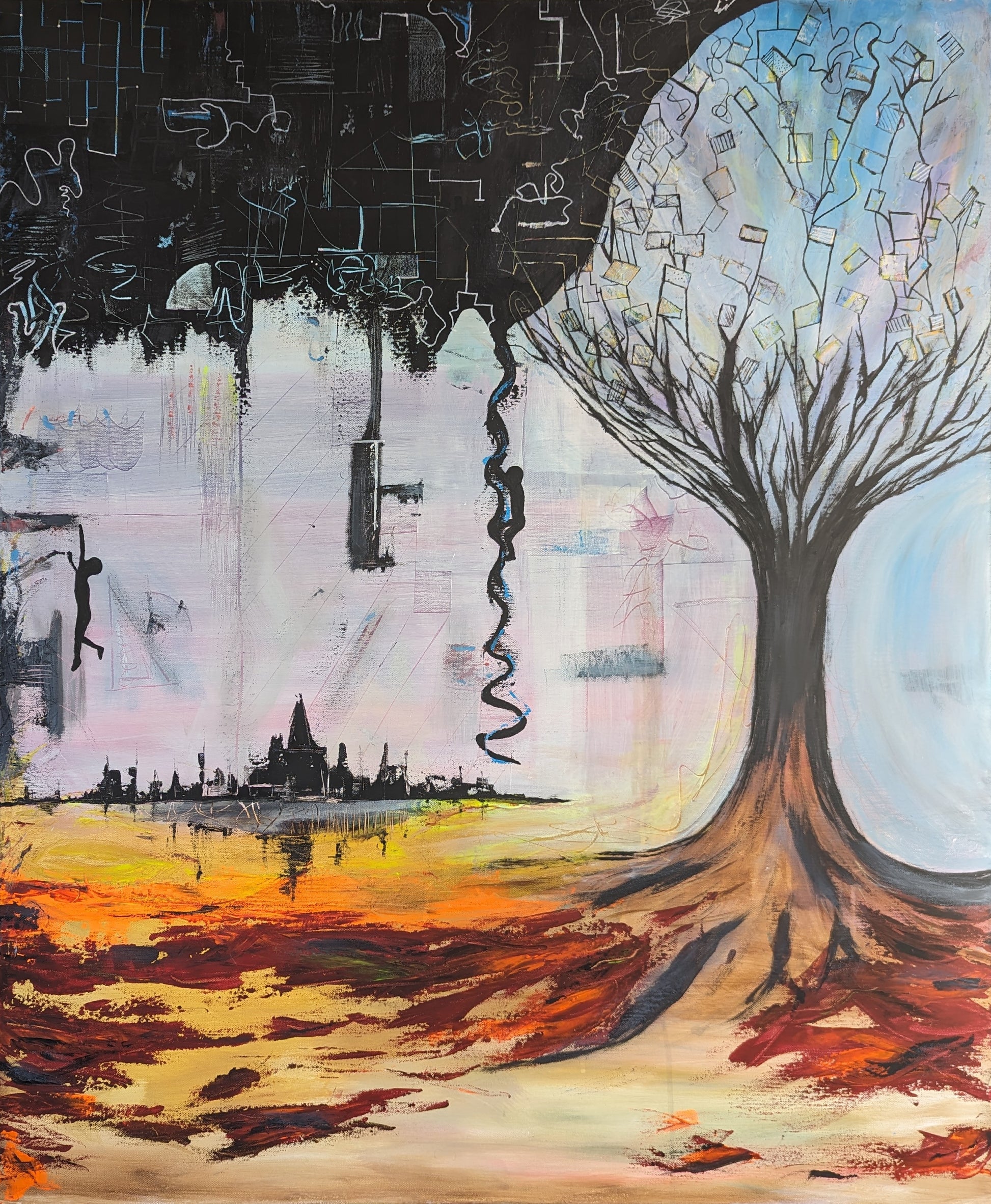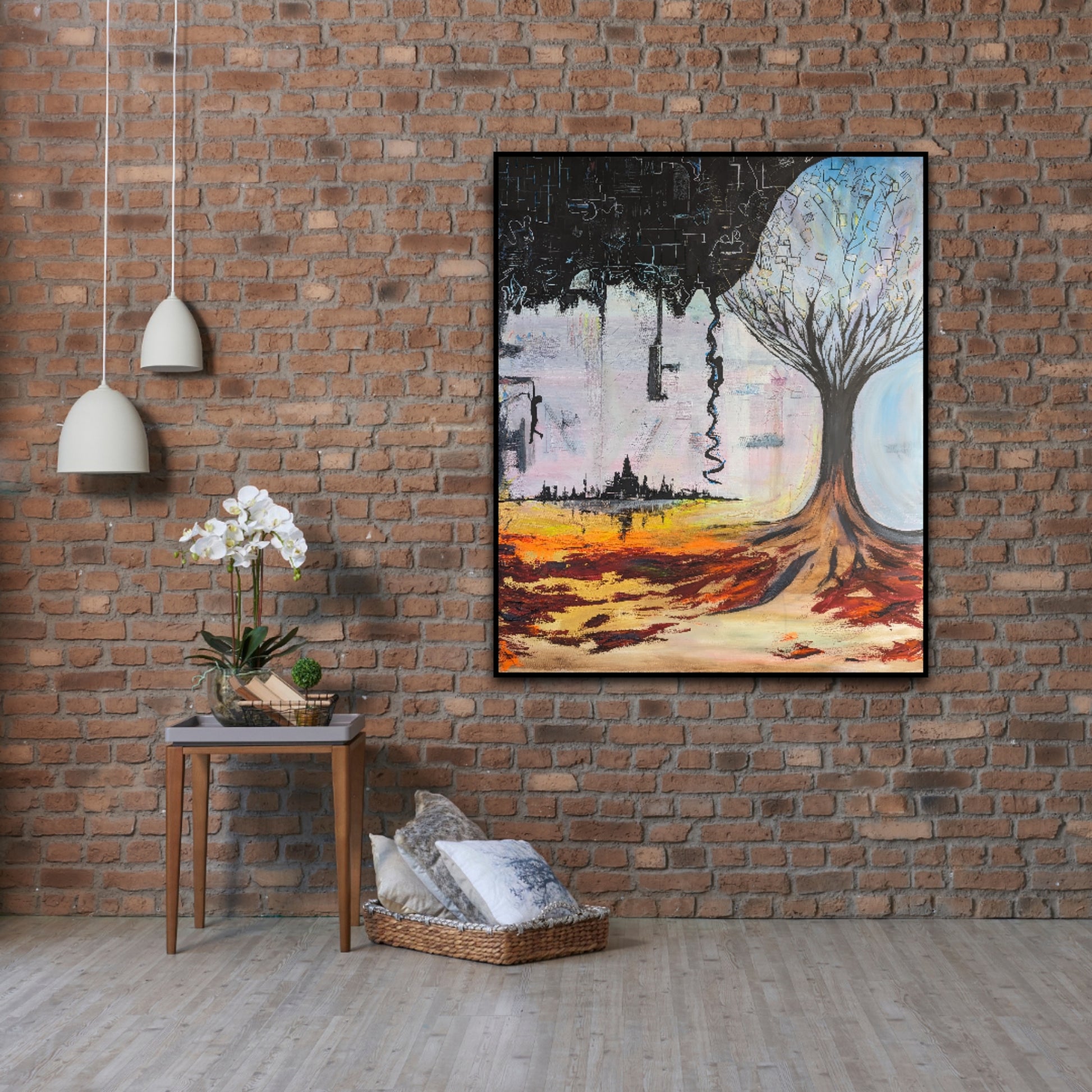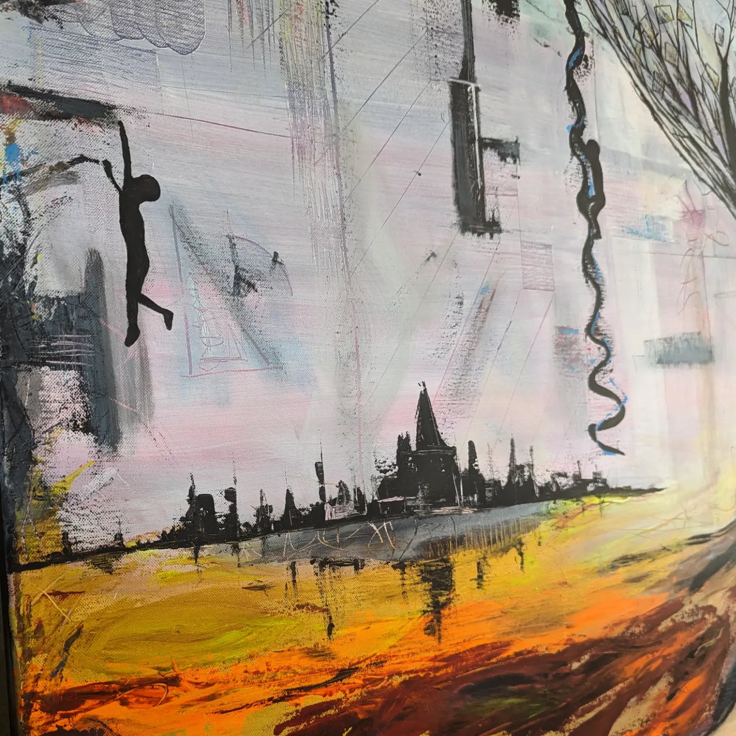 'A Reckless Solution' is a one-of-a-kind acrylic painting on canvas. This piece would make a unique gift or addition to your home.