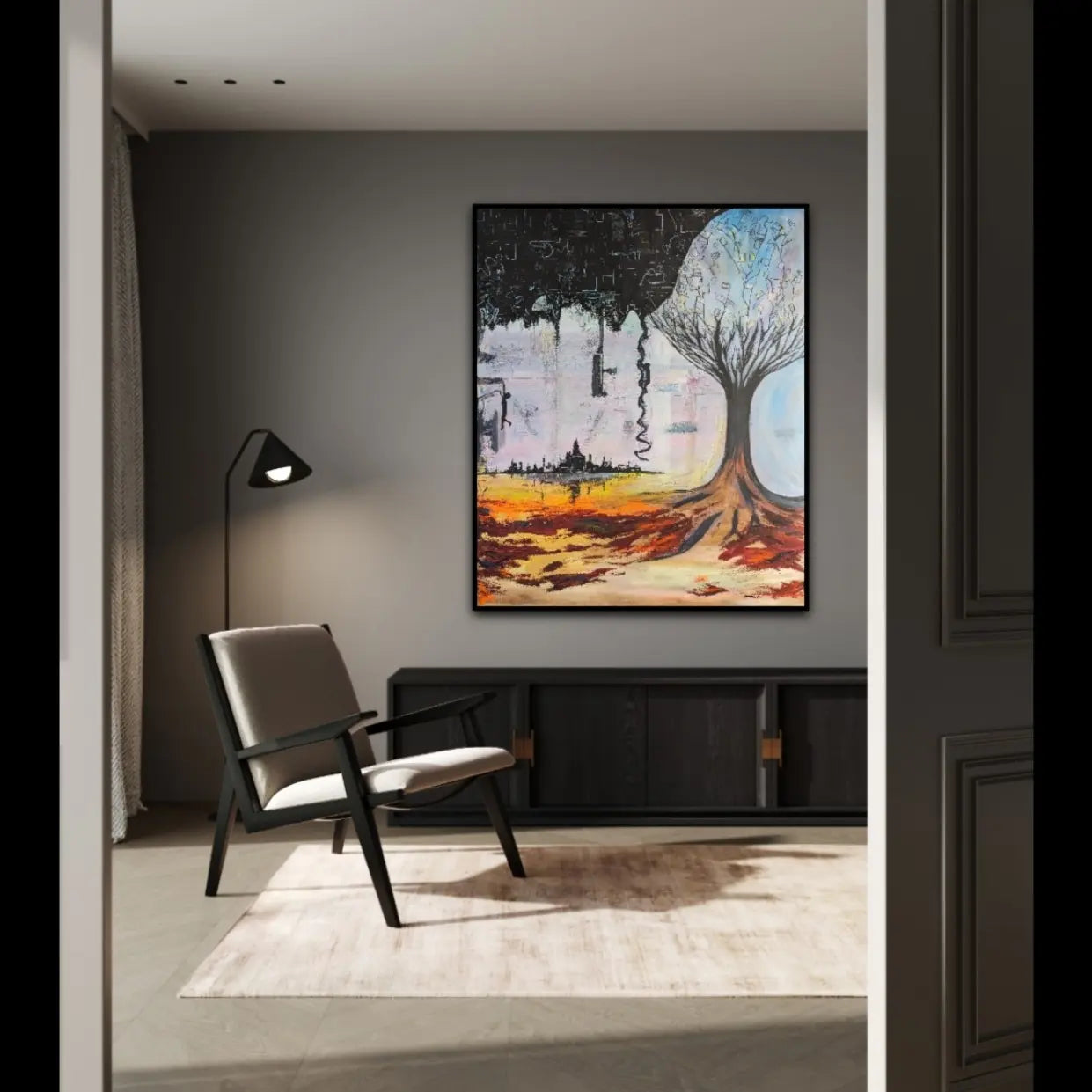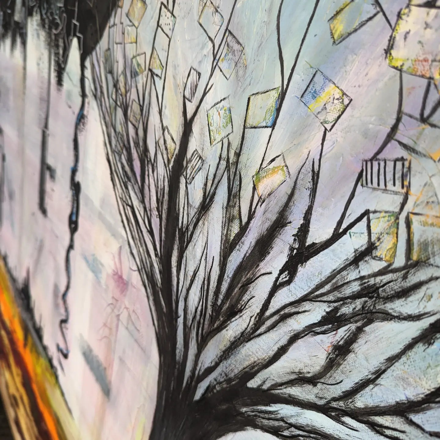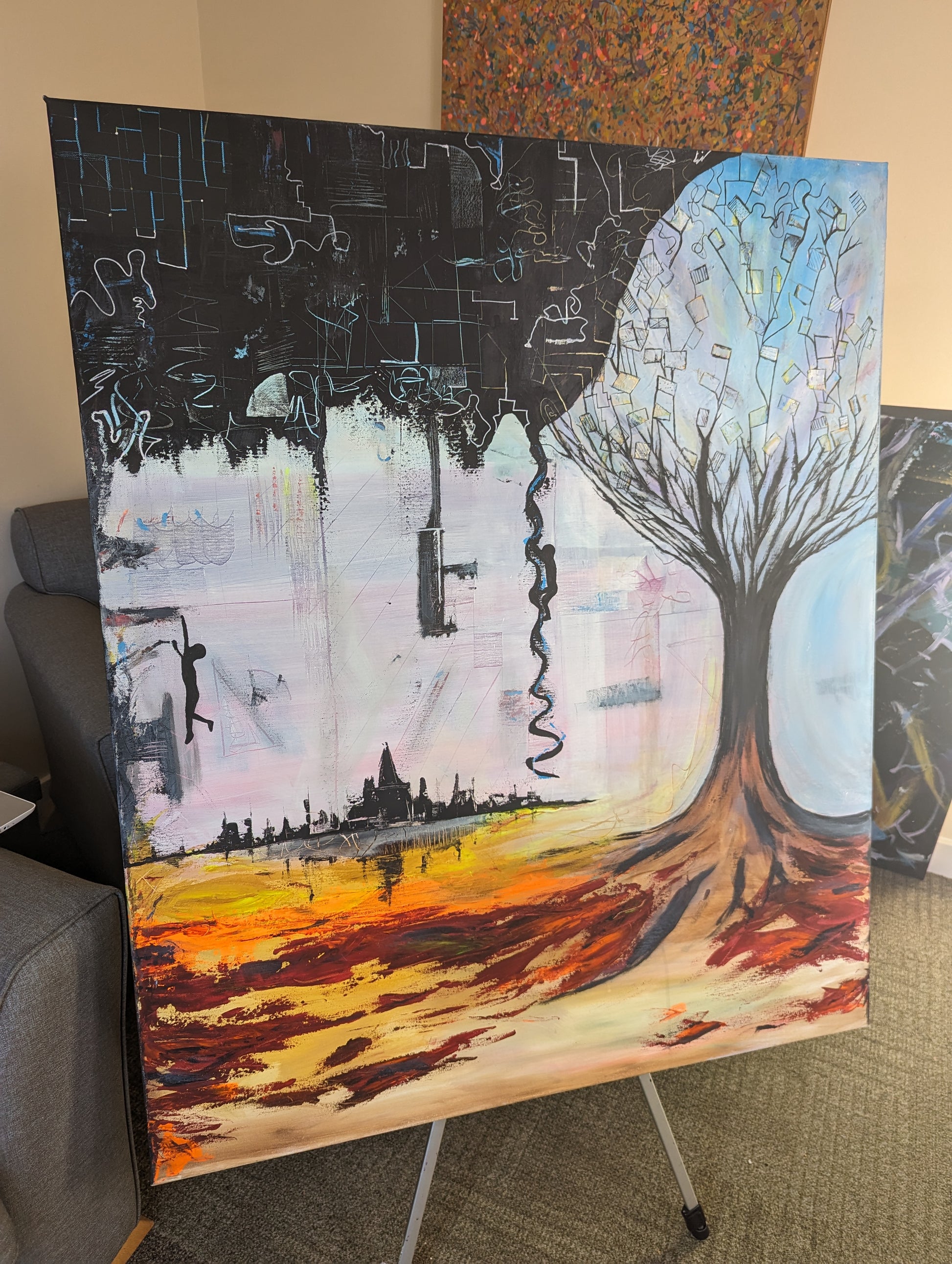 'A Reckless Solution' is a one-of-a-kind acrylic painting on canvas. This piece would make a unique gift or addition to your home.