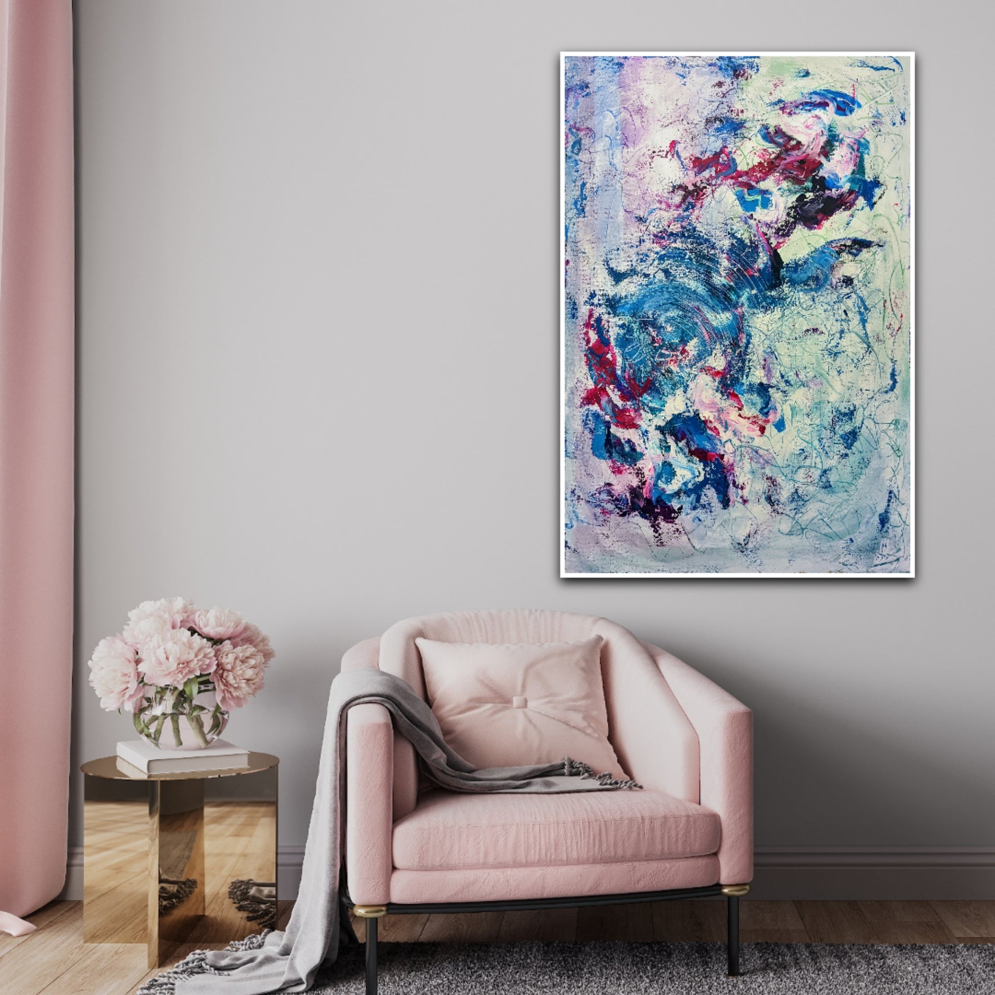 The frame on the pictures is for illustrative purpose only and it is not included in the delivery. The painting is sold without a frame